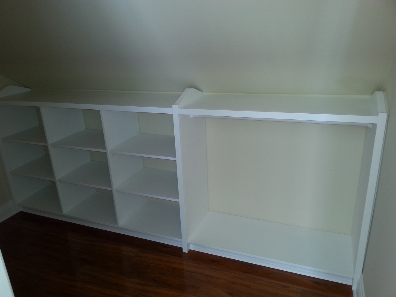 This is a white Lacquer shelving and hanging storage
