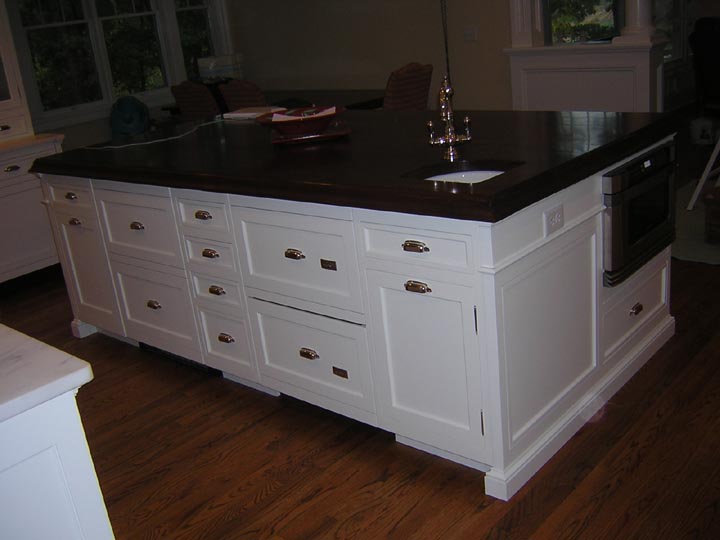 Island front with a under counter fridge drawers and dishwasher drawers