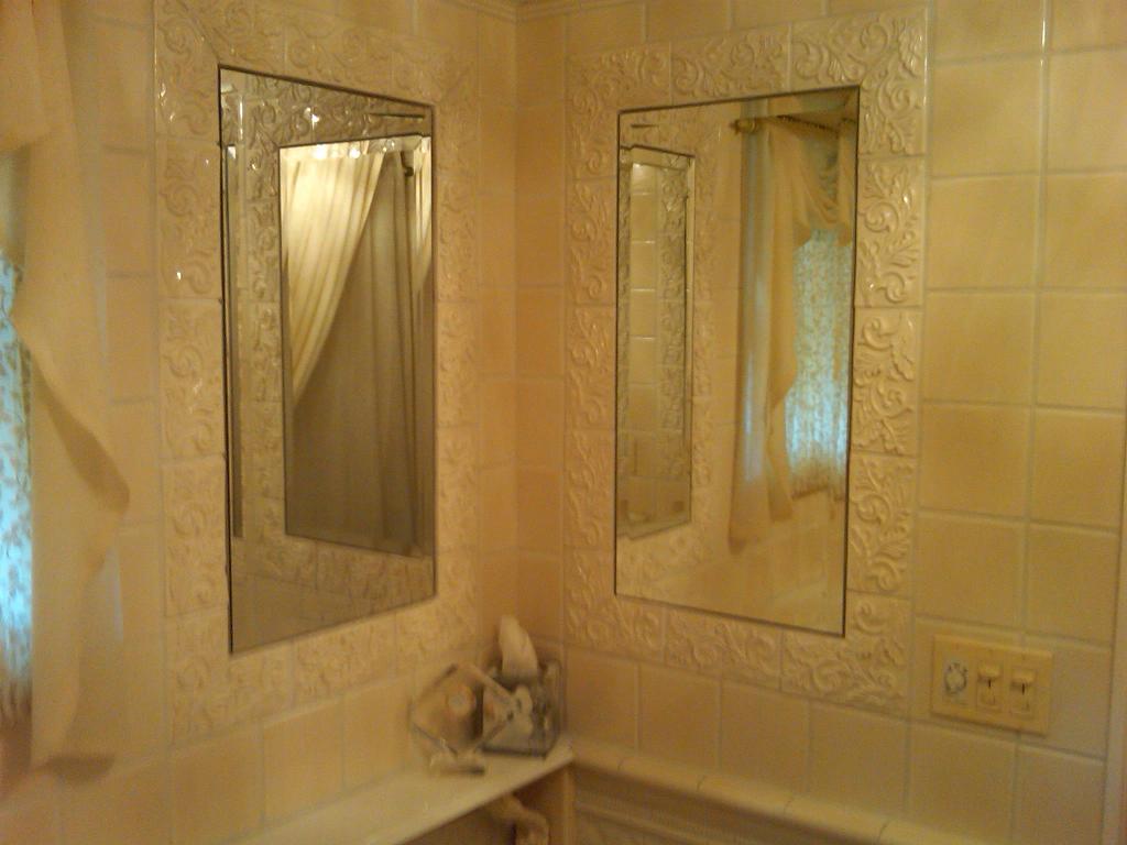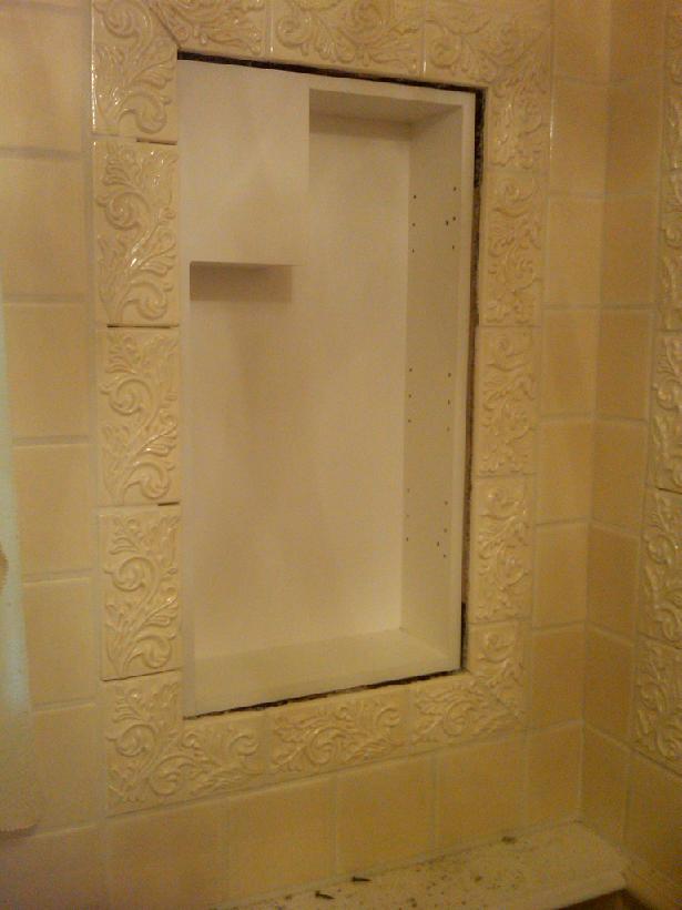 ![]() We started off with beveled mirror set in a ceramic wall frame. |