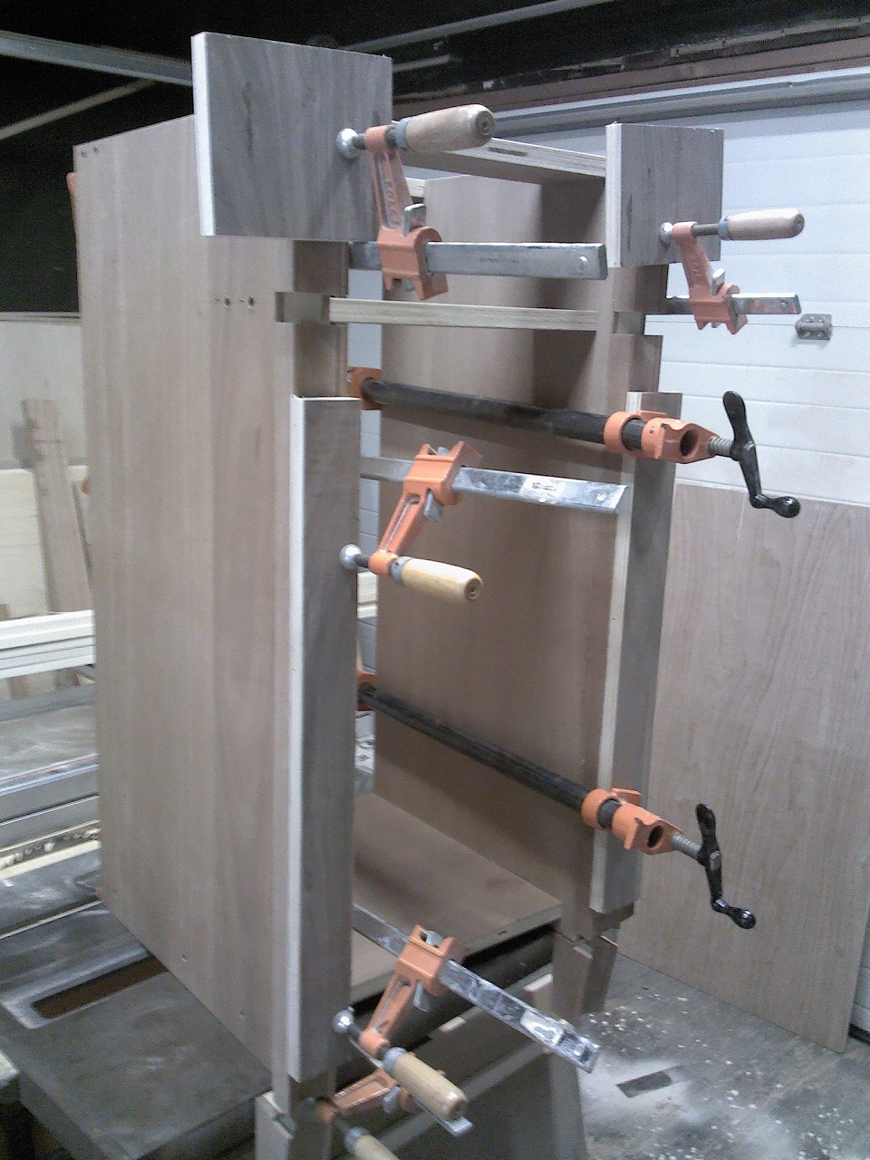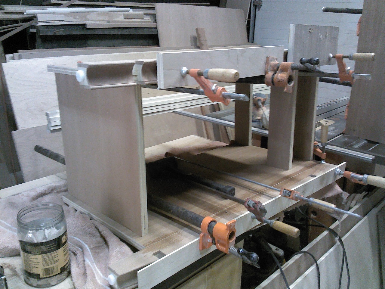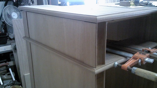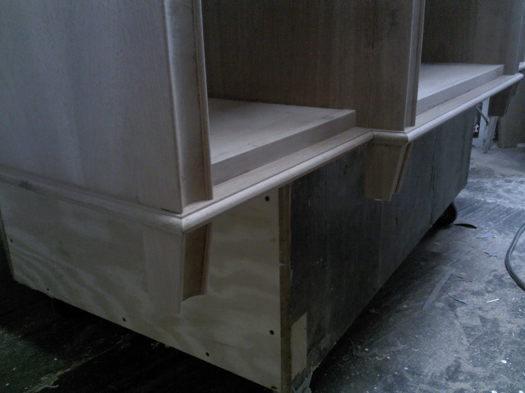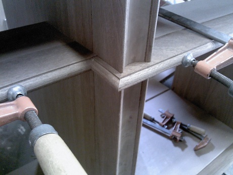 | Cabinet posts, millwork and glue up. |