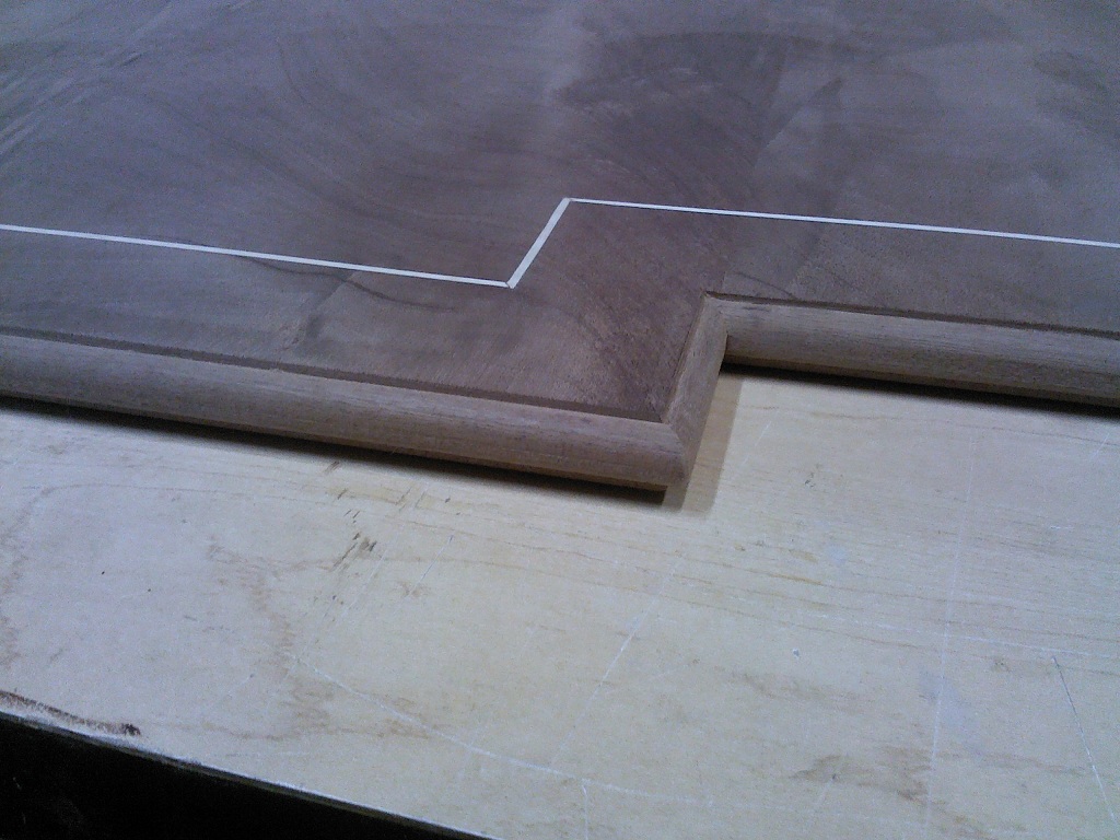 ![]() The finished edge detail and curly maple veining stripe. |