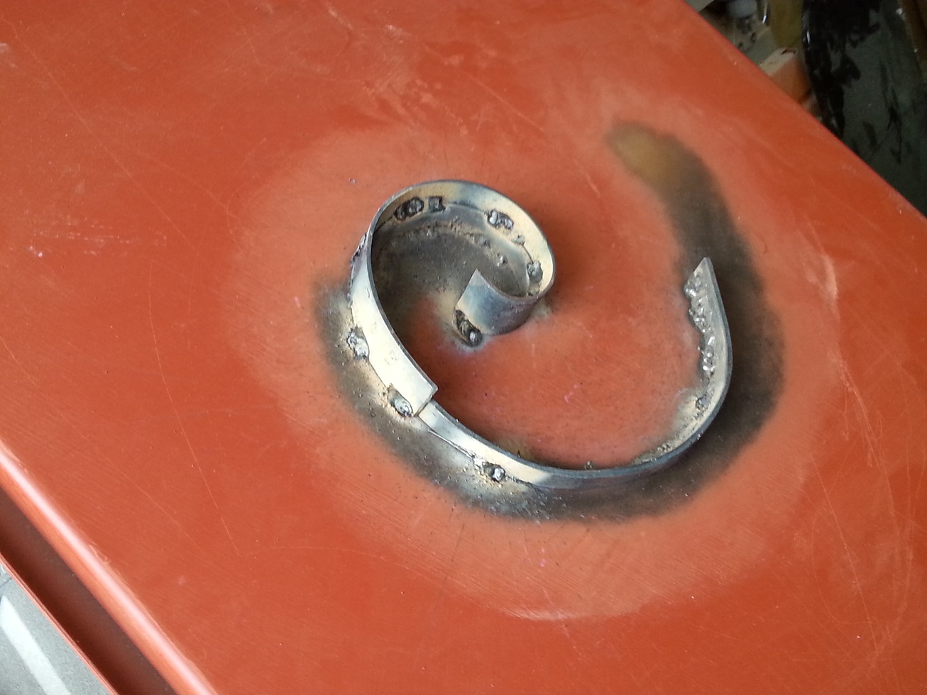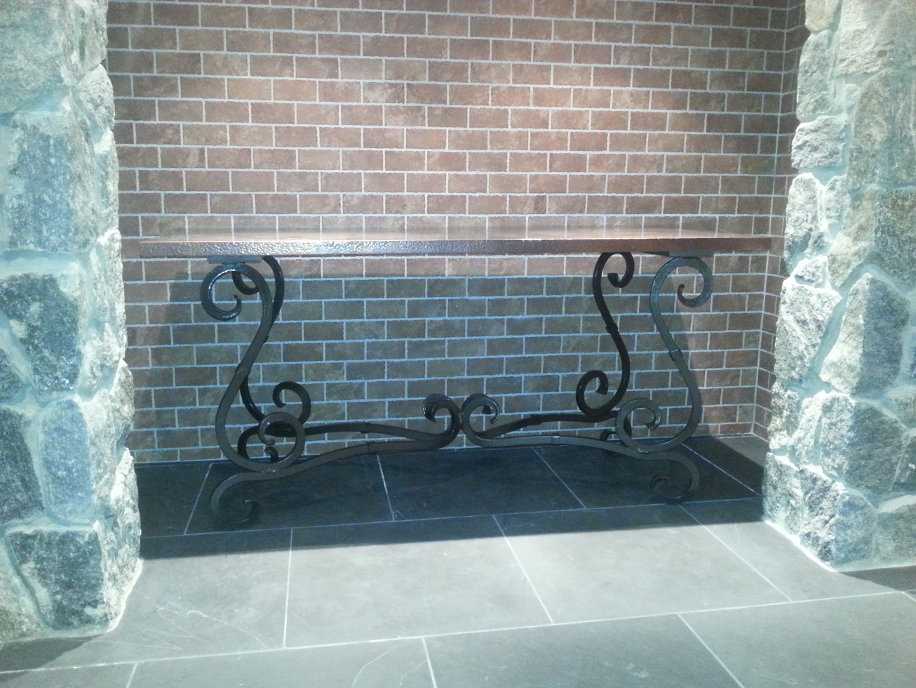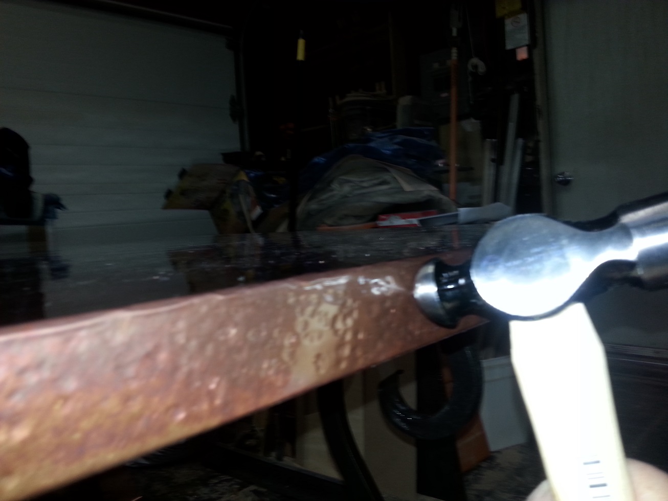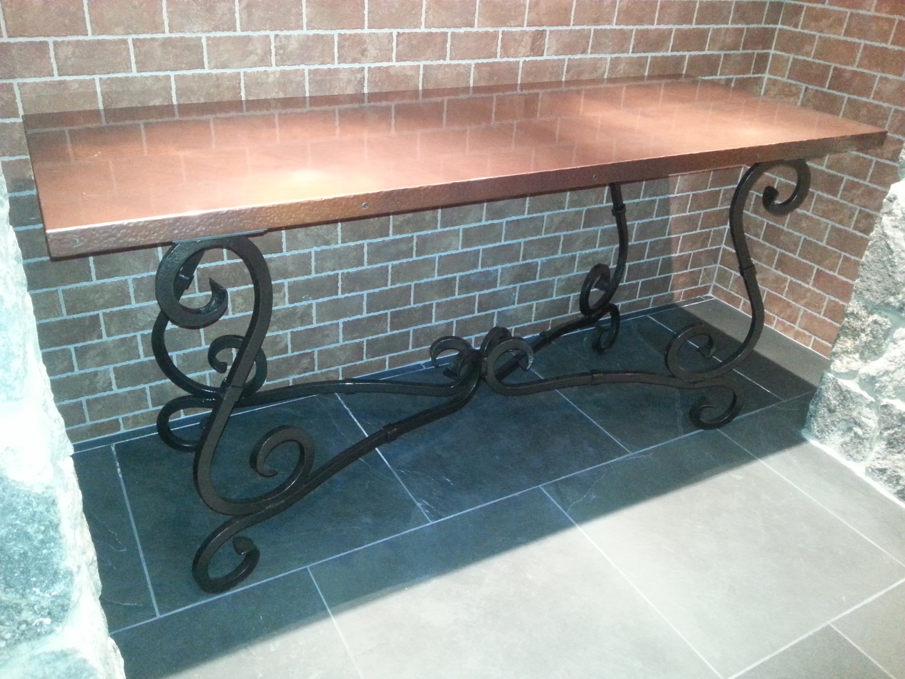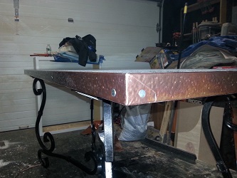 | The copper top with a hand hammered edge. | ||