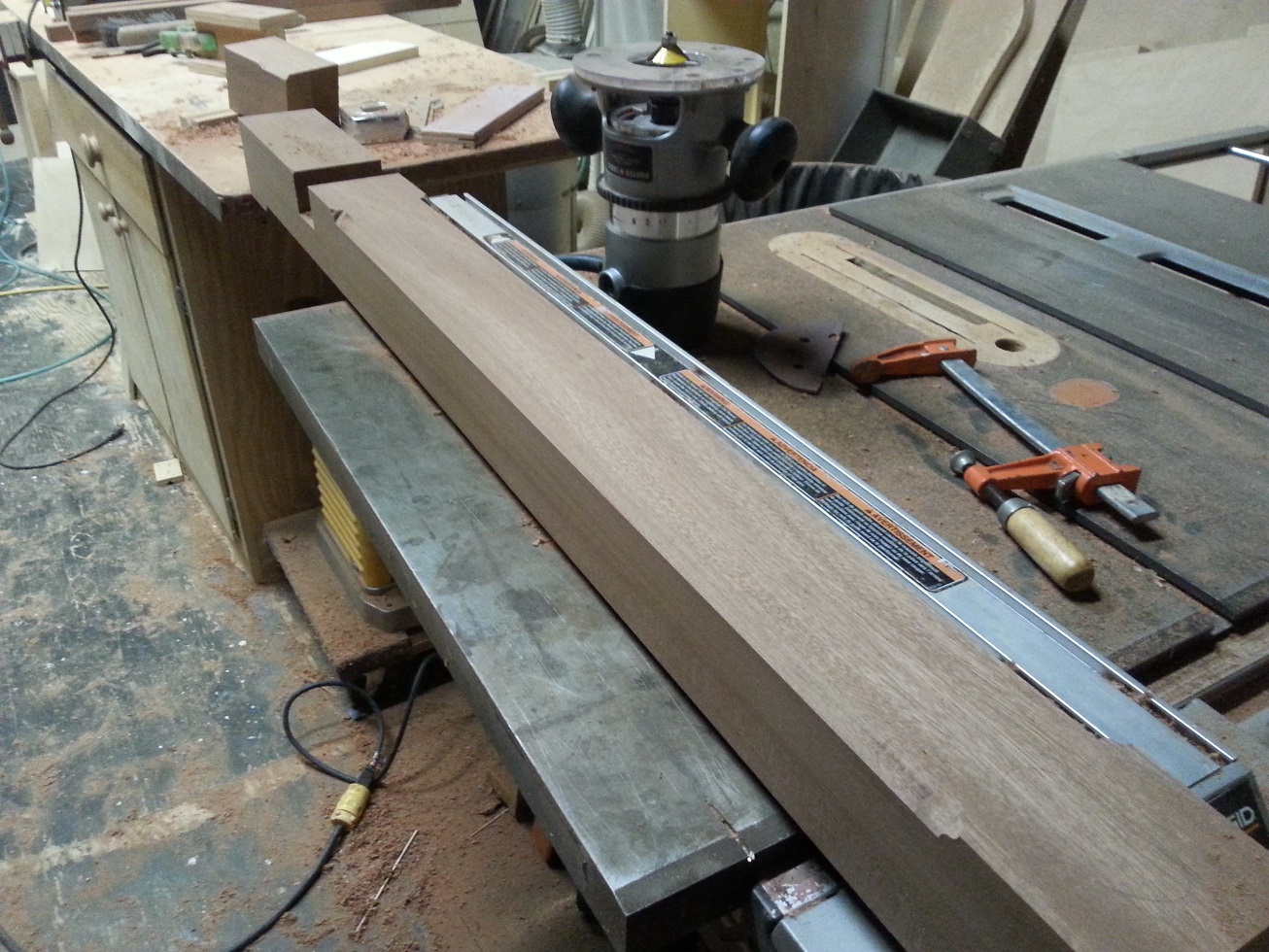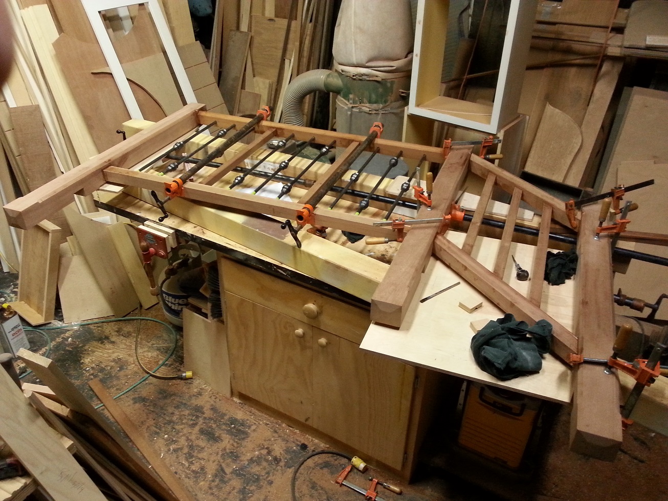 | clean up between the top and bottom detail with a chamfer bit. And final glue up on the bench. | |