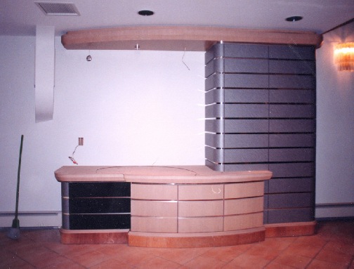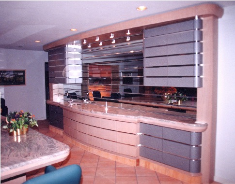 They are a combination of plastic laminate and light stained rift sawn oak veneer