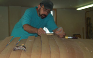 Once the first layer is set the planking is epoxyed to the keel,